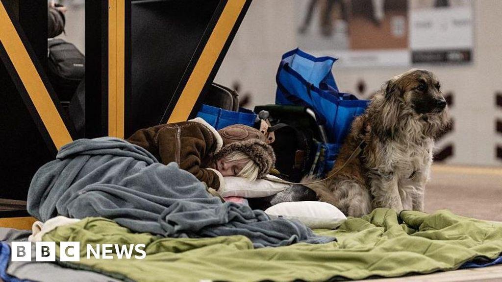 Light strips outside a house on yellow.